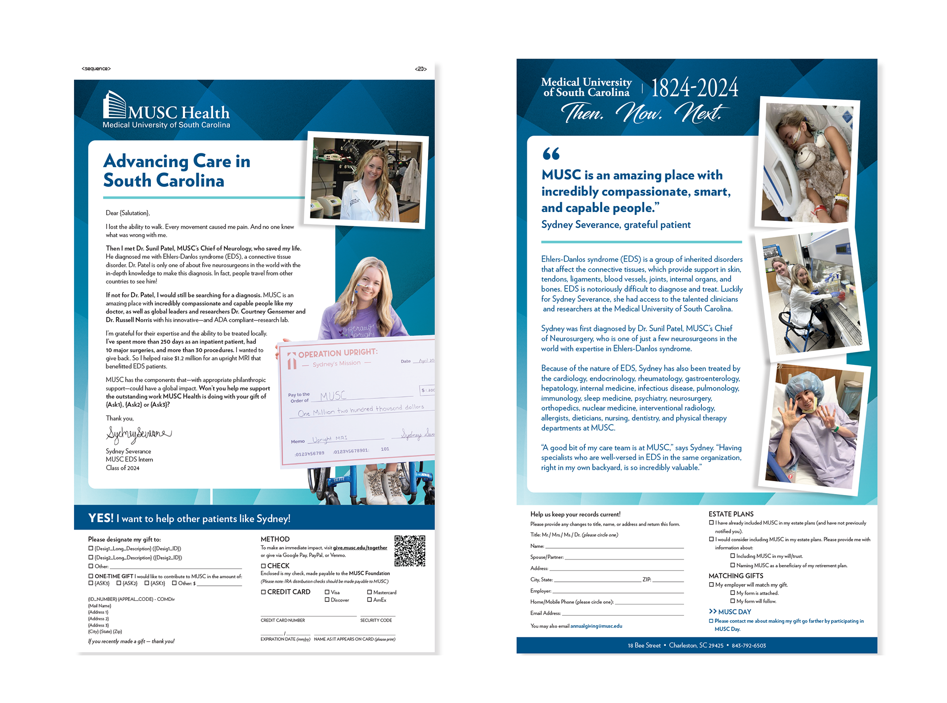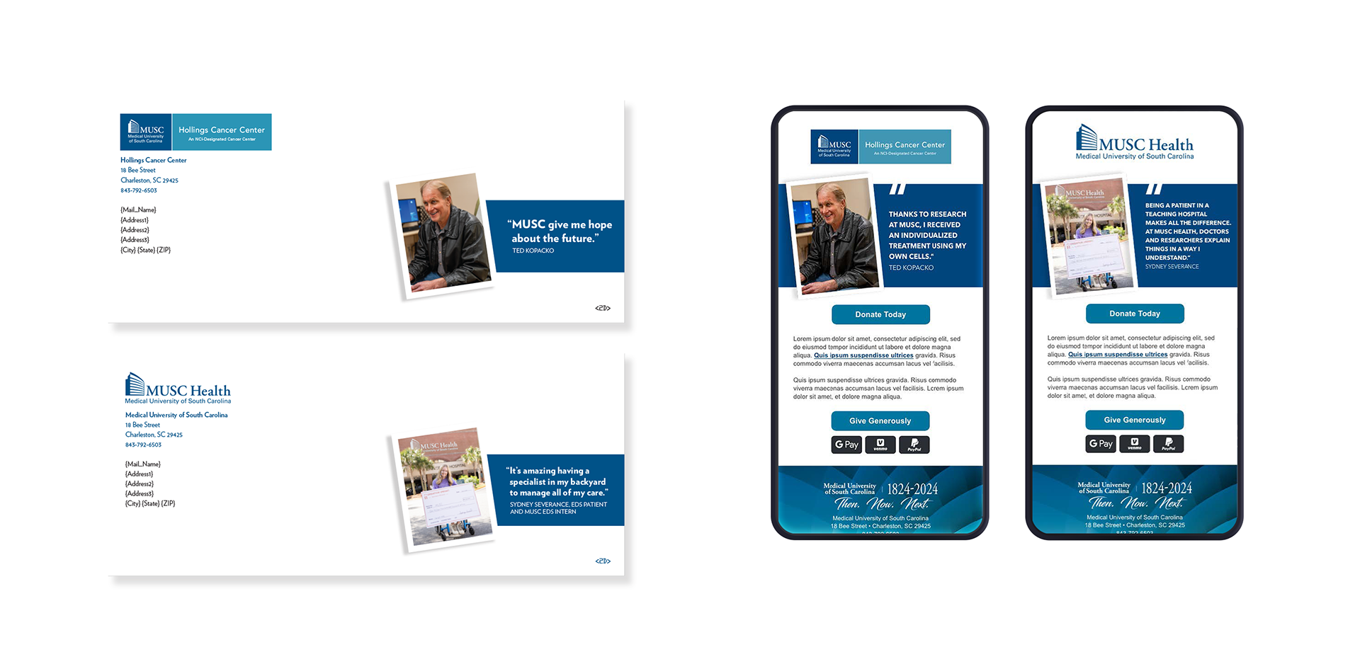 I collaborated with a cross-functional team—including another designer, writers, the client, a project manager, and client success directors on fundraising campaigns. Each campaign required materials to support multiple departments, each with distinct priorities and messaging. I designed print and web materials using a shared visual foundation that could be adapted across departments, allowing each piece to feel tailored while maintaining consistency and cohesion throughout the campaign. The work focused on clear hierarchy, thoughtful storytelling, and emotional resonance to inspire donor support and strengthen engagement.